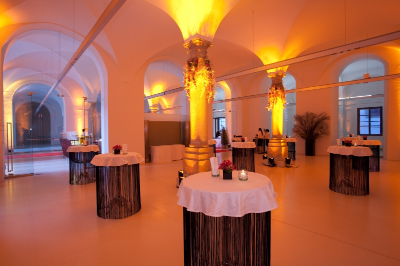 After the renovation and restoration of the building (2003 – 2006), the historic premises, with their pillars, arches and vaulted ceilings, have retained their natural atmosphere, while intensifying the dialogue with the present. Spacious glass surfaces provide the kind of transparency that is also inherent in state-of-the-art science: progressive, open, an escape from the elitist, intellectual ivory tower. A knowledge-based information society needs meeting places that stimulate communication and understanding among companies, research institutes and interest groups. As a communication site, it aims to bring about collaboration that transcends subject boundaries and involves different occupational groups. As a central nodal point, it serves to bring together protagonists from the political, business and scientific fields and spans social networks. In a stylish, historic atmosphere, the Aula der Wissenschaften facilitates a dialogue with the general public and promotes scientific discourse.